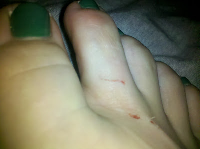 the after effects of spike running across my foot…not sure what happened to make him run in front of me like that, but ah well.